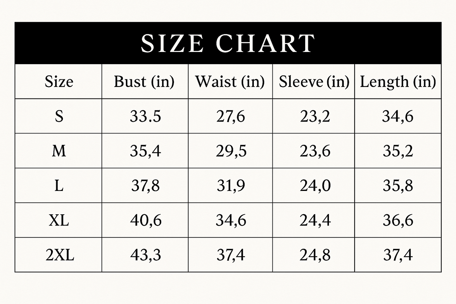 Our detailed size chart is right above—just click to expand it. All measurements are in inches. Between sizes? We recommend sizing up for a more comfortable fit.